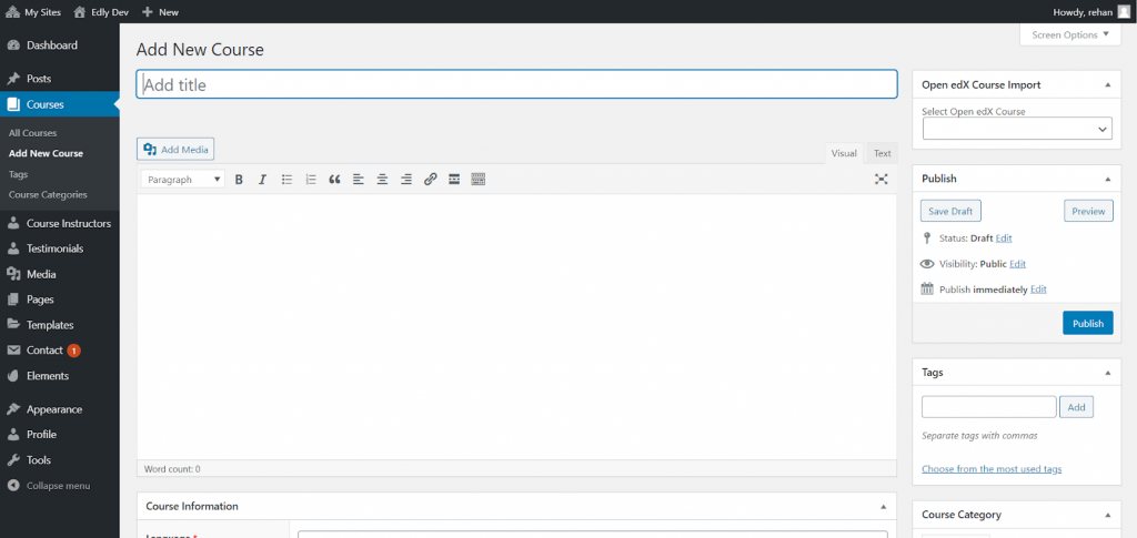 - After completing the course details, click on the Publish button on the right side of the page to view your course on your WordPress site.